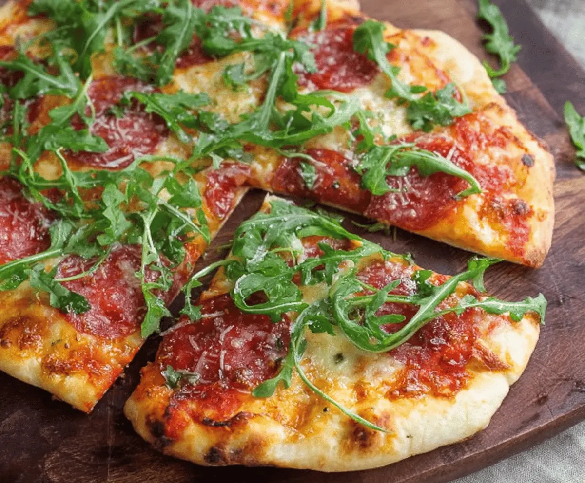 Get ready to enjoy a delightful, flavor-packed pizza night with this Arugula Salami Pizza. The combination of salty salami, melted cheese, and peppery arugula is simply irresistible!